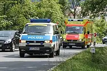 - Contact information – Appropriate contact information for the emergency service operating the emergency vehicle, or appropriate methods to request their assistance. The most common contact information printed on an emergency vehicle is an emergency telephone number, usually a national uniform number, but also a service's respective dedicated emergency number if they have one. The service's phone number or website link may also be used, though these are generally less emphasized so as to not confuse people who may be unfamiliar with a jurisdiction's emergency contact methods.