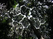 The emergent layer contains a small number of very large trees called emergents, which grow above the general canopy, reaching heights of 45–55 m, although on occasion a few species will grow to 70–80 m tall.[21][22] They need to be able to withstand the hot temperatures and strong winds that occur above the canopy in some areas. Eagles, butterflies, bats and certain monkeys inhabit this layer.