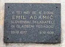 Emil Adamič (December 25, 1877 – December 6, 1936) was among the most productive Slovenian composers. He wrote choral and orchestral music, altogether over 1,000 works.[1]