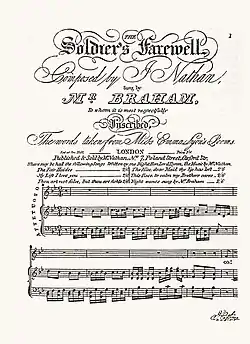 12. Nathan, Isaac (1812). The Soldier's Farewell, Composed by I. Nathan, sung by Mr. Braham … The words taken from Miss Emma Lyon's Poems. London.
