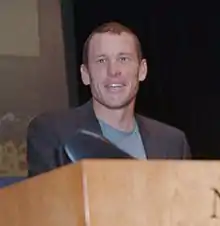 On May 20, 2010, former U.S. Postal teammate Floyd Landis – who had previously been stripped of the 2006 Tour title after a positive drug test – accused Armstrong of doping in 2002 and 2003.[44] Landis also claimed that Postal team director Johan Bruyneel had bribed Hein Verbruggen, former president of the Union Cycliste Internationale (UCI), to keep quiet about a positive Armstrong test in 2002.[45][46] Landis admitted there was no documentation supporting his claims.[47] However, in July 2010 the president of the UCI, Pat McQuaid, confirmed that Armstrong made two donations to cycling's governing body: $25,000 in 2002, used by the juniors anti-doping program, and $100,000 in 2005, to buy a blood testing machine.[48]