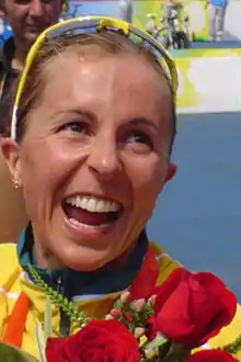 During 2005 and 2006 she was the winner of the Lifetime Fitness Triathlon in Minneapolis. She won the gold medal at the 2006 Commonwealth Games in Melbourne.[5] She won another gold medal at the 2006 World ITU Championships in Lausanne, where she finished 45 seconds in front of Portuguese triathlete Vanessa Fernandes. This made her the first female triathlete to win three world titles.[6]