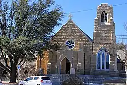 It is an ashlar stone faced church with a Gothic arch entry. The stone was recycled from the former Tom Green County courthouse, demolished in 1927.[2]