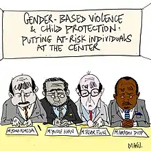 He has contributed cartoons and illustrations to several humanitarian publications and campaigns, including for the Sphere Standards, which sets international humanitarian assistance standards, and the International Peace Institute's Management Handbook for UN Peacekeeping missions.[48]
