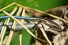 Emoia caeruleocauda, commonly known as the Pacific bluetail skink or Pacific blue-tail skink, is a species of lizard in the family Scincidae. It is widespread in the Indo-West Pacific.[1][2]