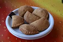 The empanada resembles savory pastries found in many other cultures, such as the molote, pirozhki,[35] calzone,[35] samosa,[35][36] knish,[35][36] kreatopitakia,[35] khuushuur, and pasty.[36]