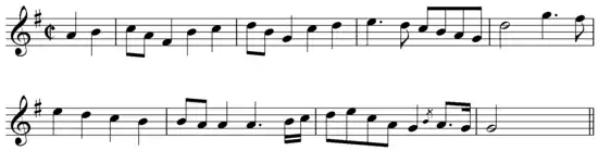 g4. a8 | b4 a c b | a8 (fis) g4 e' d | c b a b8 (g) | d'2 \bar "|" \break