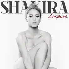 In December 2013, Sony Music Entertainment reported that Shakira's new single would be released in January 2014, and that it was supposed to be a duet with Barbadian recording artist Rihanna.[4] On 13 January 2014, "Can't Remember to Forget You" was released and indeed features Rihanna.[5] On 24 February 2014, Popjustice announced that "Empire" would be the album's second single.[6] The cover art features Shakira in a white strapless dress and hair pulled back. Shakira also premiered the track on Vevo on the same day,[7] and it was offered as a free download with a pre-order of Shakira.[8] Shakira's official Facebook page announced it as the second single from the album.[9]