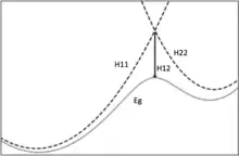 where H11 and H22 are the valence bond descriptions of the reactant and product state respectively, and H12 is the coupling parameter. The H11 and H22 potentials are usually modeled using force field descriptions Ureactants and Uproducts. H12 is a bit trickier as it needs to be parameterized using a reference reaction. This reference reaction can be experimental, typically from a reaction in water or other solvents. Alternatively quantum chemical calculations can be used for calibration.
