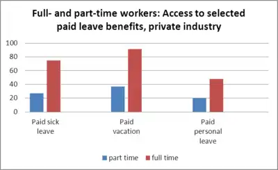 Full-time and high wage workers are much more likely to have benefits, as the charts to the right indicates.[23]