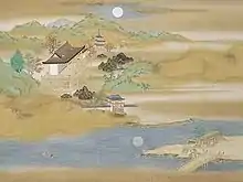 Michinaga's influence meant that Shōshi's two sons had a better chance of ascending the throne than Teishi's children—particularly after Teishi's death in 1001.[3] When Ichijō abdicated in 1011 and died soon after,[15] Shōshi's eldest son, the future Emperor Go-Ichijō, was named crown prince.[3] At that time Shōshi retired from the Imperial Palace to live in a Fujiwara mansion in the Lake Biwa region, most likely accompanied by Murasaki.[16] In 1016 when Michinaga had Emperor Sanjō—married to Shōshi's younger sister Kenshi—removed from the throne, Go-Ichijō became emperor. Shōshi's second son, Go-Suzaku, became crown prince in 1017. With an emperor and a crown prince as sons, Shōshi's position was secure and she became a powerful influence at court.[4]