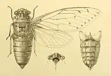 The empress cicada (Megapomponia imperatoria) is a species of cicada from Southeast Asia. It is the largest species of cicada with a head-body length of about 7 cm (2.8 in) and a wingspan of 18–20 cm (7–8 in).[1][2]
