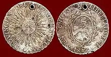 Coin from the United Provinces of the Río de la Plata issued in 1815, featuring the motto.
