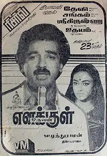 Enakkul Oruvan (transl. A man within me) is a 1984 Indian Tamil-language musical thriller film directed by S. P. Muthuraman, starring Kamal Haasan in the lead role, for whom the film was his 125th as an actor, and Sripriya, Sathyaraj in supporting roles. It is a reimagining of the Hindi film Karz (1980), itself based on the American film The Reincarnation of Peter Proud (1975). It was a flop film was also Shobana's Kollywood debut as an actress.[1]