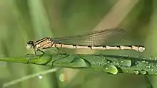 These damselflies inhabit freshwater bodies whose conditions range, they have been seen in acidic fens as well as eutrophic ponds.[2] They have been considered one of the more sensitive insects in an aquatic setting.[2][5] They are important within the trophic levels as they are an intermediate predator.[6][7] They consume smaller larvae and they are preyed on by fish and larvae bigger than them.[7]
