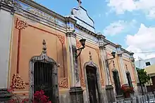On the opposite side of the plaza is the municipal palace. This building was constructed in 1759 originally as a royal treasury (casa real). Later it became a municipal jail.[2][5] After Independence, it was renovated to become the main governmental building. It is Neoclassical in design and it has unique arches in the front, which were roofed in 1834.[2] There is also a mural dedicated to the Cristero War.[6]