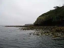 Polynesian explorers arrived at Enderby Island in the 13th or 14th centuries, about the time mainland New Zealand was settled. Archaeological excavations revealed their presence at Sandy Bay, in a sheltered and relatively hospitable location, accessible to seal colonies.[2] Excavated earth ovens contained the bones of seals and sea lions, fishes, mussels, albatrosses and petrels. The Polynesians stayed for one or more summers and left behind scrapers, tools, and fish hooks.[3]