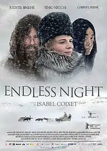 Endless Night (Spanish: Nadie quiere la noche) is a 2015 drama film directed by Isabel Coixet. It was selected to open the 65th Berlin International Film Festival.[1] The film is set in 1908 in Greenland and is an international co-production between Spain, France and Bulgaria.[2] The film premiered with the title Nobody Wants the Night. Following poor reviews and sales the film was recut by Coixet and released under the title Endless Night.[3]