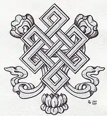 The endless knot or eternal knot is a symbolic knot and one of the Eight Auspicious Symbols. It is an important symbol in Hinduism, Jainism and Buddhism. It is an important cultural marker in places significantly influenced by Tibetan Buddhism such as Tibet, Mongolia, Tuva, Kalmykia, and Buryatia. It is also found in Celtic, Kazakh and Chinese symbolism.