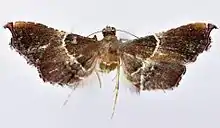 The wingspan is 17−18.5 mm. The forewings are blackish brown, covered with dense reddish brown scales. The hindwings are concolorous to the forewings, but yellowish white on the costal margin.