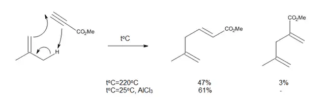 Thermal ene reactions have several drawbacks, such as the need for very high temperatures and the possibility of side reactions, like proton-catalyzed olefin polymerization or isomerization reactions. Since enophiles are electron-deficient, it was reasoned that their complexation with Lewis acids should accelerate the ene reaction, as it occurred for the reaction shown in Figure 8.