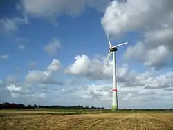 In June 2012, at least 147 Enercon E-126 windturbines were operating, in construction, or nearing final approval, 35 of them completed and operating.[9] Furthermore, during 2010-2011, onshore wind farm projects still in their early design processes were considering wind turbines of the 2-3.5 MW class, or wind turbines of the 5-8 MW class. This approach is at least applied in the Netherlands. Examples for this trend are found for instance in the preliminary research for the "Wind farm de Drentse Monden"[10] aiming at 300-450 MW with possibly 50-60 E-126/7.5 MW turbines, "Wind farm N33"[11] aiming at >120 MW with possibly 15-40 E-126/7.5 MW turbines, "Wind farm Krammer"[12] aiming at >100 MW with possibly 11-21 E-126/7.5 MW turbines, "Wind farm Wieringermeer"[13] aiming 200-400 MW with possibly 60 or more 6+ MW turbines (in that case possibly Repower 6M/6.15MW).