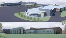 Plans for the consolidated building at Enfield High School by the firm, Silver Petrucelli & Associates, and construction company, Gilbane, called for a four floor "STEAM" (Science, Technology, Engineering, Art, Mathematics) wing addition to the south end of the building off A-wing which will include state-of-the-art science labs and classrooms. A-wing will see a "like-new" renovation, as well the rest of the facility, that would gut the entire building to its core structure and will construct updated classrooms. A grand lobby with a tiered glass enclosure is proposed for the main entrance. B-wing plans to house an expanded guidance department and career services office. Expansion to the gymnasium out of the north end of the building will result in renovated locker rooms and health classrooms; and cardio, wellness, and weight rooms. Expansion to the cafeteria and auditorium will double their size. Renovations to C-wing also include a second lobby for the performing arts music wing with expanded music classrooms, practice rooms, and offices. The entire building will be implemented with advanced technology and air-conditioning. Site-plans reworked campus landscaping, traffic flow, and parking spaces for faculty and students. The total cost of construction for the expansion and renovation to Enfield High School is approximately $103 million.[13][14] However, with a reimbursement rate from the State of Connecticut at approximately 73% the town will pay a share of approximately $35 million, bonded over 20 years. The closing of Enrico Fermi High School as a school will result in approximately $2 million in savings each year. Plans state that savings from the closing of one high school will pay for the 20 year bond, according to the Enfield Pre-Referendum High School Consolidation Committee. If the referendum did not pass, Enfield's two high schools would have remained open, but would have required limited renovations for updates to each facility at a cost of $50 million each, which would not be reimbursable by the state, in order to adhere to the State of Connecticut's new educational mandates that go into effect in 2017. Moreover, issues with Americans with Disabilities Act regulations had to be addressed in both buildings. The referendum went to town's voters in November 2012, and passed by a 2:1 margin.[15]