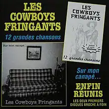 Enfin Réunis (Finally Reunited) is the name of the fifth album by Québécois néo-trad band Les Cowboys Fringants. It's a double album (2 CD). This album is actually the first two albums by Les Cowboys Fringants 12 grandes chansons and Sur mon canapé. It was created due to high demand as the two first albums were desirable object to hard core fans[...]despite the musical errors, simple songs, and the "cheapo" side of recordings.[1]