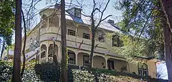 Engadine, also known as the Captain John K. Hoyt House and Engadine 1885 Inn, is a historic home located near Candler, Buncombe County, North Carolina. It was built in 1885, and is a 2+1⁄2-story, six bay, rectangular plan, Queen Anne style frame dwelling. It is richly decorated and features inset porches, cantilevered corner balcony, and varied shingled and sawnwork decoration. It is currently used as a bed and breakfast inn.[2]