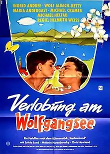 Engagement at Wolfgangsee (German: Verlobung am Wolfgangsee) is a 1956 Austrian comedy film directed by Helmut Weiss and starring Ingrid Andree, Wolf Albach-Retty and Maria Andergast.[1] The film was shot in Agfacolor at the Schönbrunn Studios in Vienna and on location around Lake Wolfgang. The film's sets were designed by the art director Wolf Witzemann. It is a remake of the 1943 film Sophienlund which was itself based on a 1941 play of the same title which Weiss co-authored. It was part of a large number of heimatfilm made in Germany and Austria during the decade.[2]