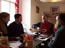 Engel (German for angel or angels) is a role-playing game. The original German version uses a rule system in which the gamemaster and players draw associative, tarot-like cards instead of rolling dice to determine the outcome of an event (this system is called the Arcana system in the original German version). The English version of Engel does not include the Arcana system at all; it is based on the d20 System instead. The German version includes d20 rules in addition to the Arcana system. The game was published by the German publisher Feder&Schwert (German for "Feather&Sword"), who also published the World of Darkness RPG series in Germany and used to publish the Dungeons & Dragons series.