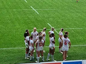 The English women's national rugby sevens team has competed in the Hong Kong Women's Sevens tournaments since 1997. England are also one of six teams announced by the International Rugby Board as "core teams" that will compete in all four rounds of the inaugural IRB Women's Sevens World Series in 2012–13.[1] England won the bronze medal at the 2018 Commonwealth Games.[2]