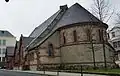 In the past, Homburg was best known for its spa, which attracted many tourists from England; in 1857, 20% of the city's 8500 visitors were from that country. That percentage rose after 1876, when it became traditional for people to go to the spa after the end of the parliamentary session in Homburg.[3] An Anglican church was first requested in the town in 1859. Ferdinand, Landgrave of Hesse-Homburg granted a site on Ferdinandsplatz (now Ferdinandstraße 16) in memory of the late Landgräfin Elizabeth, daughter of George III of the United Kingdom and Ferdinand's sister-in-law. The building was partly financed by the Blanc brothers, local hoteliers and casino-owners,[4] and designed by the English architect Ewan Christian.[5] as a two-storey hall church with a semi-enclosed choir and a saddleback slate roof. One of its original stained glass windows is now in the town museum at the Gothic House. It is reminiscent of an English parish church and could stylistically be called Gothic,[1][2] neo-Gothic,[4][5][6] Norman or Romanesque Revival.[7]