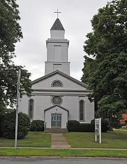 English Evangelical Lutheran Church of Dansville, also known as Saint Paul's Lutheran Church, is a historic Lutheran church located at Dansville in Livingston County, New York. It was built in 1847, and is a one-story, late Greek Revival style frame church. It has a front gable roof with a wide frieze and features rounded arched windows and a two-tiered steeple. An education wing was added in 1924 and expanded in the 1950s, and a projecting entrance was added in 1947. It was the church where Clara Barton founded the first local chapter of the American Red Cross in 1881.[2]