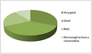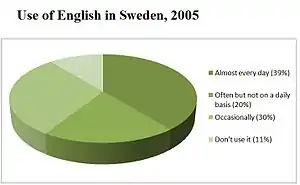 - "Europeans and their Languages" (PDF). Special Eurobarometer 243 / Wave 64.3 - TNS Opinion & Social. European Commission. February 2006. Retrieved May 3, 2011. According to this Eurobarometer survey, 89% of respondents in Sweden indicated that they know English well enough to have a conversation (p. 152). Of these 35% had a very good knowledge of the language, 42% had a good knowledge and 23% had basic English skills (p. 156).