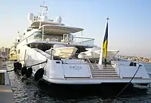 Enigma (formerly ECO and Katana) is a large private superyacht. According to Power and Motoryacht magazine, she is owned by Aidan Barclay, son of the British media tycoon David Barclay, who recently purchased the Telegraph newspaper. She was sold after her former owner, Larry Ellison, took delivery of Rising Sun, the 6th largest private yacht in the world. Measuring slightly more than 244 feet (or around 75 metres) long, Enigma was launched in 1991 and originally christened ECO by its former owner, Mexican mogul Emilio Azcárraga, founder and former CEO of TV and media conglomerate Televisa. Enigma is renowned for her design, including a pyramidal superstructure surrounded by convex windows and an agile design that enables her to achieve a maximum speed of 36 knots.[1][2] The yacht has nine luxurious suites and the rear deck was originally designed to carry a Maule turboprop floatplane.