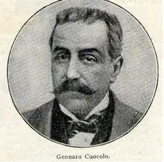 Alfano was charged with the murder of Gennaro Cuocolo and his wife, suspected of being police spies, on 6 June 1906. The murder case would develop into one of the most complicated legal cases of the early twentieth century in Italy.[22] The police moved quickly to arrest Alfano and his brother Ciro, Giovanni Rapi, and two members of the Camorra rank and file, Gennaro Jacovitti and Gennaro Ibello. They had frequented a restaurant in Torre del Greco, in the vicinity of the Cuocolo murder. However, the investigation did not produce evidence and the suspects were released from jail 50 days later, not in the least thanks to the intervention of the priest Ciro Vitozzi, the "guardian angel" of the Camorra and Erricone's god-father.[22][23][24]