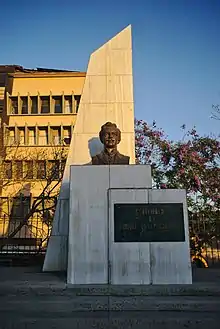On 9 July 1941, by initiative Nicaraguan write Juan Manuel Mendoza, who wrote Gómez Carrillo's biography, a Committee pro Enrique Gómez Carrillo Monument was created, and it was in charge of Natalia Górriz de Morales. Among those who worked with the committee were Miguel Ángel Asturias and Federico Hernández de León, who put at the committee's service the Diario del Aire broadcasts, and Nuestro Diario newspaper, respectively.[23] Finally, during Dr. Juan José Arévalo presidency, in 1947 the monument was opened to the public in Concordia square, which was renamed as Enrique Gómez Carrillo Park.[24]