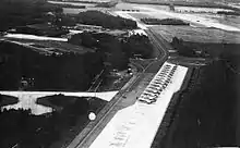 Twente Airport was opened July 1931 by the mayor of Enschede, Edo Bergsma. KLM started a scheduled flight to Amsterdam in 1932, which was suspended in 1939. During World War II the German Luftwaffe took over the airport and made it a military airbase, renaming it Fliegerhorst Twente. In April 1945 allied troops reoccupied the airport and transferred ownership to the Dutch armed forces. A minor typo in the deed misspelled the airport name as Airbase Twenthe, with an added 'h'.[2]