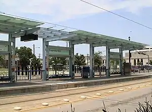 Ensemble/HCC is an island platformed METRORail light rail station in Houston, Texas, United States. The station was opened on January 1, 2004,[1] and is operated by the Metropolitan Transit Authority of Harris County, Texas (METRO). Located Midtown,[2] this station is close to both the Houston Community College System's Central College campus and The Ensemble Theatre, which together give the station its name.