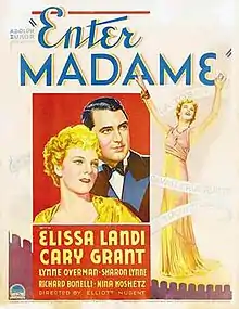 Enter Madame is an American romantic comedy film directed by Elliott Nugent, starring Elissa Landi and Cary Grant, and released by Paramount Pictures.