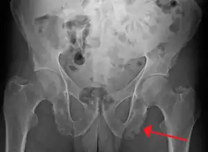 Generalized involvement of the entheses with calcification of tendon and ligament insertions and of joint capsules has been found for example in people with X-linked hypophosphatemic rickets.[2]