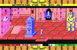The game is presented in an isometric format and is set inside an ancient Egyptian tomb. Sir Arthur Pendragon's main objective is to escape the tomb, the Great Sphinx, before all oxygen runs out.[1] To achieve this end, the player must navigate a series of chambers linked by corridors, solve logic puzzles and deal with hostile enemies by either avoiding or fighting them. The tomb has seven floors.[2] Pendragon's only form of defence is his whip, which he can utilise to defend himself from enemies.[1] The player also has access to a torch, which will allow them to see in certain pitch-black areas of the tomb.[1]