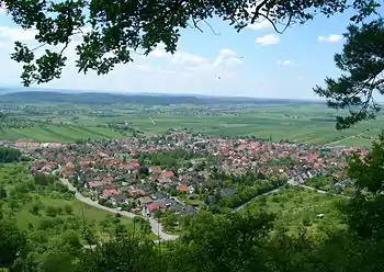 The origins of the Church St. Michael go to the 9th century back (hall church). 1275 The parish is first mentioned (Diocese Constance). The oldest bell, the Ave-Maria, is from the first half of the 14th Century. The nave of the Gothic parish church was built in 1452 and reformed several times inside. The last major renovation was in 1967. The organ was begun by Christian Gotthilf Haußdörffer and Johann Christian Hagemann completed 1764. In 1972 a new organ by Oesterle is installed in the old housing. In 1999, the organ of is redeveloped and its sound extended. In the choir is a triptych by Manfred Luz (2002): Michael has the fallen angel in his place shows him at the same time the way to the light. A partnership of the parishes with district Kittelsthal of the city Ruhla exists since 1990.