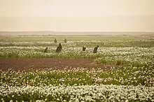 The dilapidated irrigation systems are a part of a constellation of environmental factors which have, in part, driven the boom of opium production in Afghanistan beginning at the time of the Soviet invasion.[2][12][14] The lack of irrigation, in combination with the Soviet destruction of orchards and farmland, the irrigation dependency of over 70% of Afghan crops due to the aridness of the region, and increasingly severe drought have caused wheat, cereal crop, and pasture failure.[2][11] These consequences have given rise to food insecurity and losses of livestock and livelihood.[2][11] The resultant debt, paired with the dominance of agriculture in the Afghan economy and the inequity and economic instability imparted by war, has incentivized farmers to shift from livestock to poppy farming.[2][11] Poppies are hardier, requiring approximately 80% less water than licit crops, and have an assured value on the global market.[2][14] Thus, farmers accredit poppy cultivation for their ability to keep their land.[2]