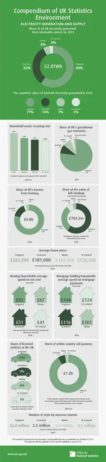 In 2015, it was reported that for the past decade, the state of the environment in the UK had significantly deteriorated both in urban and rural areas. According to the UK NEA, grazing air pollution and the forces of climate change have significantly affected the mountainous regions of the UK.[1] Due to climate change; rising seawater temperatures and exploitation of marine resources led to a serious loss of quality in UK marine ecosystems.[1] Air pollution, climate change, litter, waste, and soil contamination are all a part of the human activity that create these environmental issues in the UK.