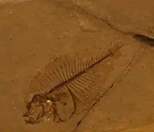 Eobothus is significant as one of the earliest genera of flatfish, one of the last major fish groups to evolve. It closely resembled modern flatfish, with an oval-shaped body about 10 centimetres (4 in) long, surrounded by elongated dorsal and anal fins.[1] In the adult, the eyes were both located on the left side of the head, as in modern species, and the fish would have lain flat against the seafloor on its right side. This was an evolutionary advance from still earlier flatfish, such as Heteronectes, in which the eyes only partially migrated.[2]