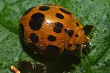 Epilachna borealis is a species of beetle that can commonly be found in the eastern United States. It is yellow with seven large black spots on each elytron and four small black spots on the pronotum. The species feeds on cucurbitaceous plants. Its common name is squash beetle.[1] It is often mistaken for a ladybug or a cucumber beetle because of its similar appearance.