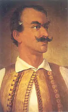 On 30 January 1854, Spyridon Karaiskakis (a Lieutenant in the Greek Army and son of the hero of War of Independence, Georgios Karaiskakis), gave a number of inspiring speeches in villages east of Arta (Peta region),[1] seeking to inspire the Epirotes to revolt against Ottoman rule and join their province to Greece. The initial objective was the provincial capital, Arta, which was captured by Karaiskakis with a force of 2,500 irregulars. In the meantime, the Greek General Theodoros Grivas took a band of 300 volunteers to the villages of Peta and Pente Pigadia.[2] Apart from the region of Arta, in Tzoumerka, the revolt also spread to most of the mountainous regions of Epirus and a number of towns soon came under the full control of the revolutionaries: Paramythia, Souli, Tsamantas, Himara and some villages around Ioannina.[3][4] The revolt was also in full swing in parts of the nearby region of Thessaly.