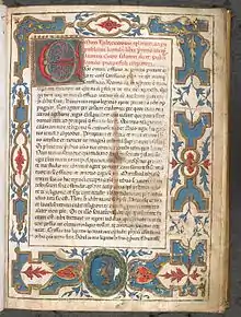 A number of manuscript copies of this collection have reached modern times. The earliest witness to the text is a palimpsest on a single leaf, written in uncials of the fifth or sixth century (CLA IV.443; it contains portions of letters 6.9 and 6.10. Two more fragments from 12th-century manuscripts – the outer bifolium of an eight-sheet gathering containing 2.1.1–2.17.4, and a single leaf containing 5.10.1–5.12.2 – represent one medieval tradition. One complete manuscript survives containing the entire collection, written in the first half of the 9th century in several hands (M); at one point it was in the hands of bishop Leo of Vercelli, and it is included in the 9th-century library catalog of the Abbey of Lorsch; Coluccio Salutati made a copy of this manuscript in 1392; it currently resides at the Laurentian Library in Florence as manuscript 49.9. There are also two groups of medieval manuscripts which represent a tradition independent of M: one provides the text for books 1–8 (X), the other for books 9–16 (Y). The X tradition is contaminated by M, and thus is of less value than the Y tradition.[3]